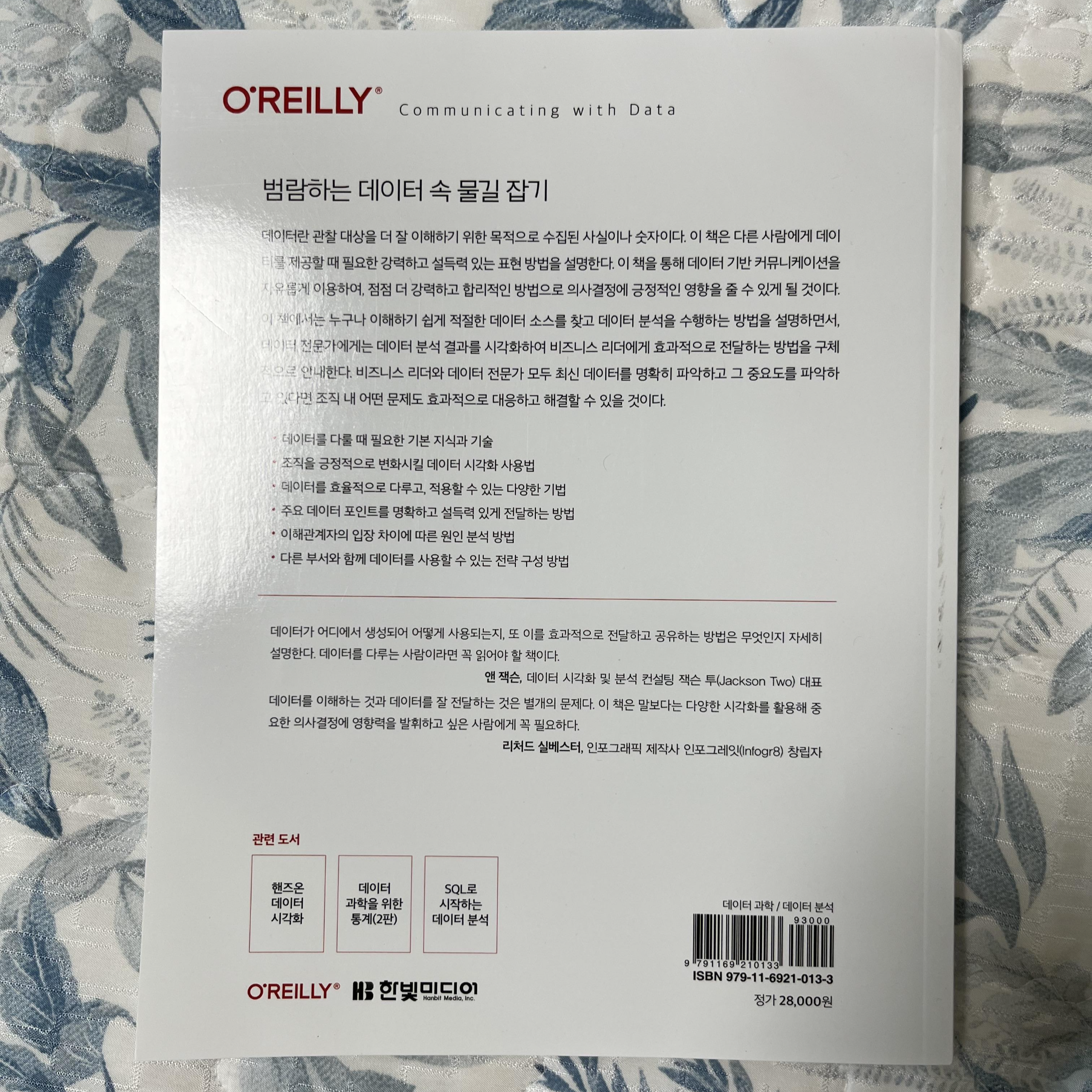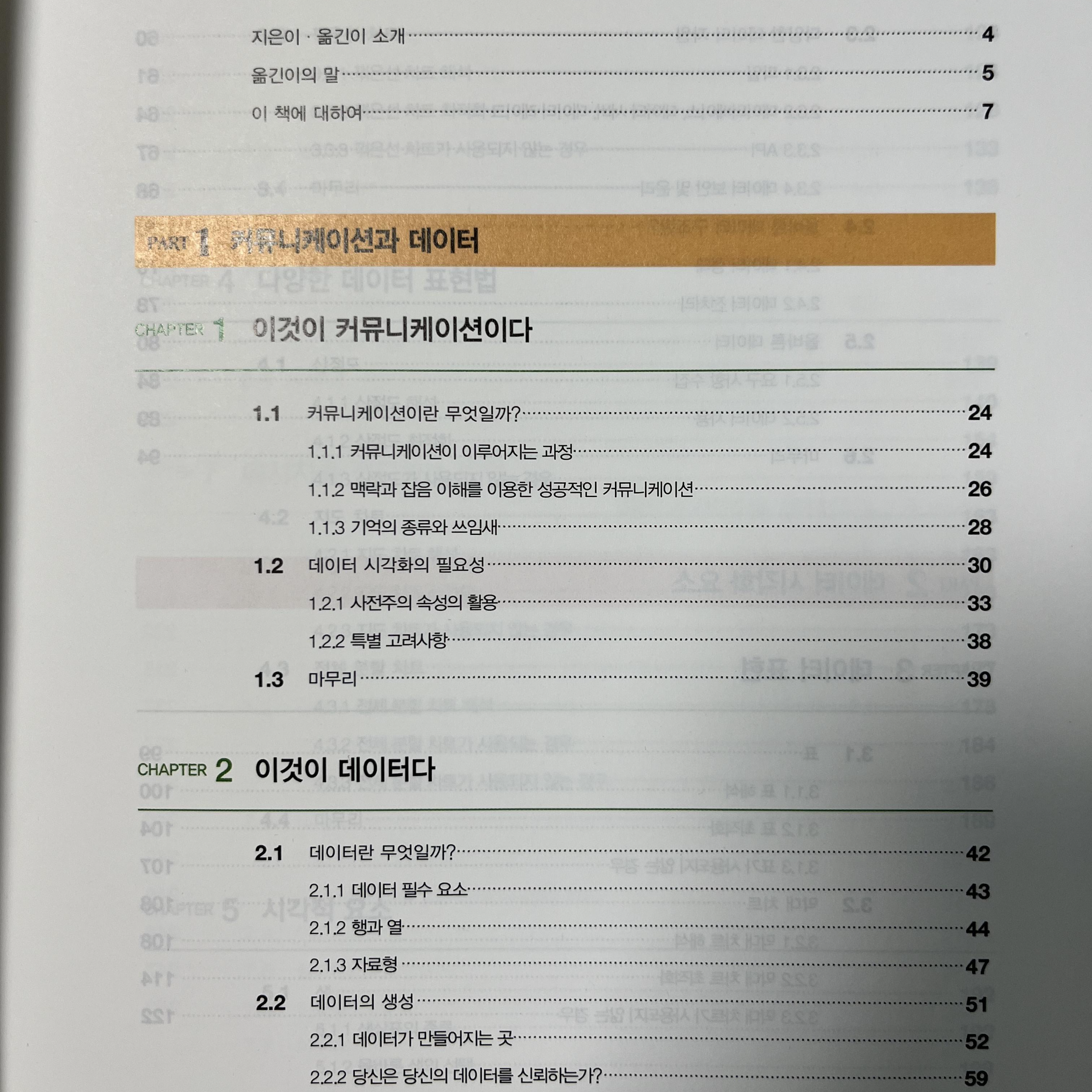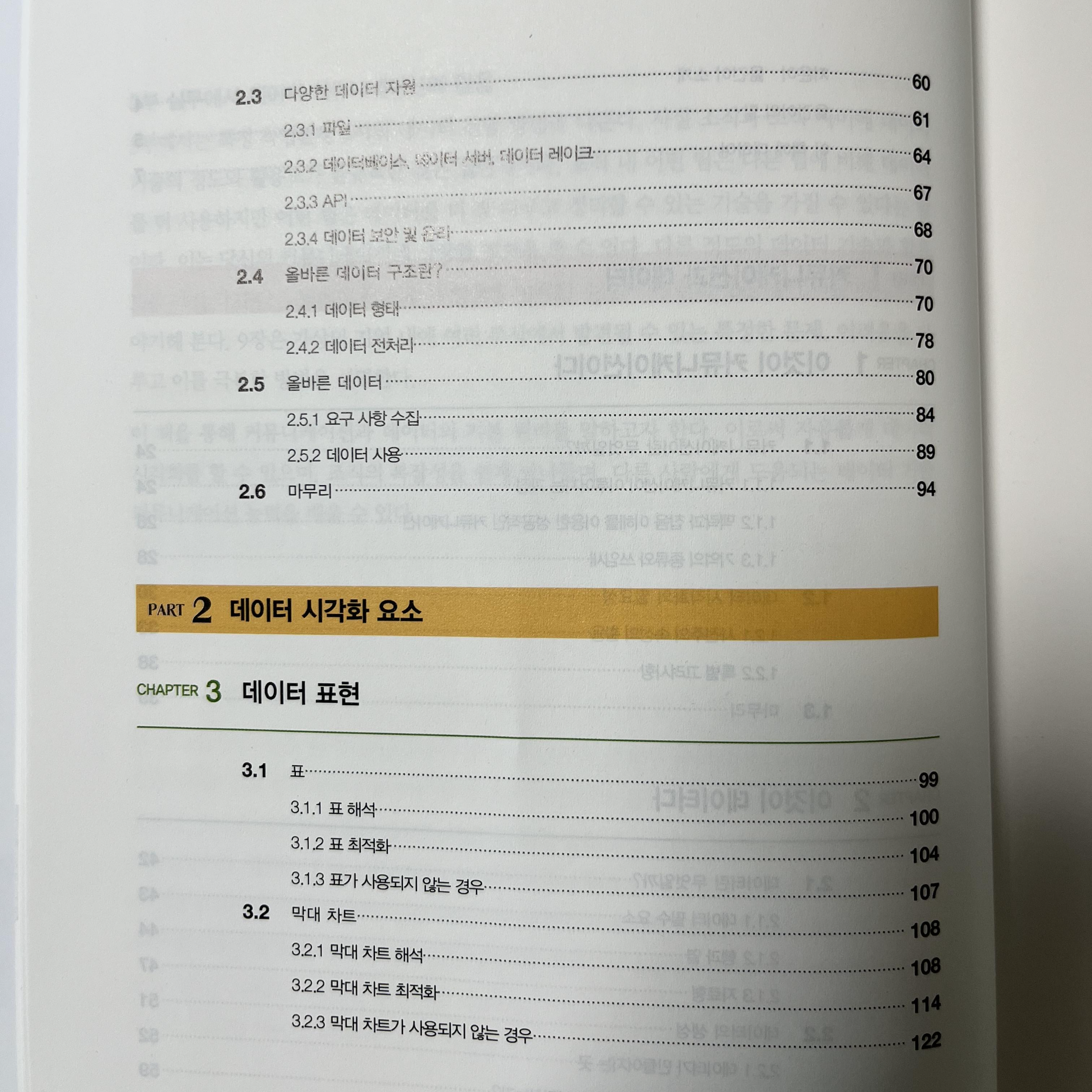 데이터가 넘치고 넘쳐나는 요즘 시대에, 이를 잘 정리하고 효과적으로 보여주는 능력은 어느 곳에 있더라도 중요한 것 같다. 그런데 이는 배우기가 은근히 어렵다. 가끔 웹페이지에서 꿀팁이 있는 경우는 있지만, 그때 한 번 보고 잊어버리거나 그것으로 배운 지식이 나에게 잘 남지는 않았던 것 같다. 오히려 책으로 처음부터 끝까지 이렇게 정리가 되어 있는 것이 오히려 좋을 것 같고, 뿐만 아니라 이 책에는 정말 데이터 시각화와 전달에 대한 자세한 내용과 팁이 들어 있어서 정말 좋은 것 같다.