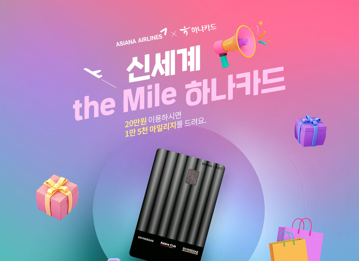 1만 5천 마일리지 이벤트! 신세계 the Mile 하나카드│아시아나항공