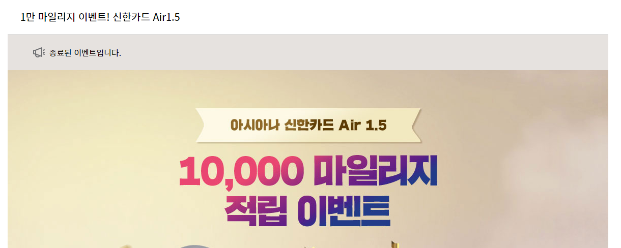 나는 원래 신한은행과 신한카드만 사용하던 사람인데 신한카드는 이런 이벤트가 없었다. 사실 아시아나 신한카드 Air 1.5라고 있는데,