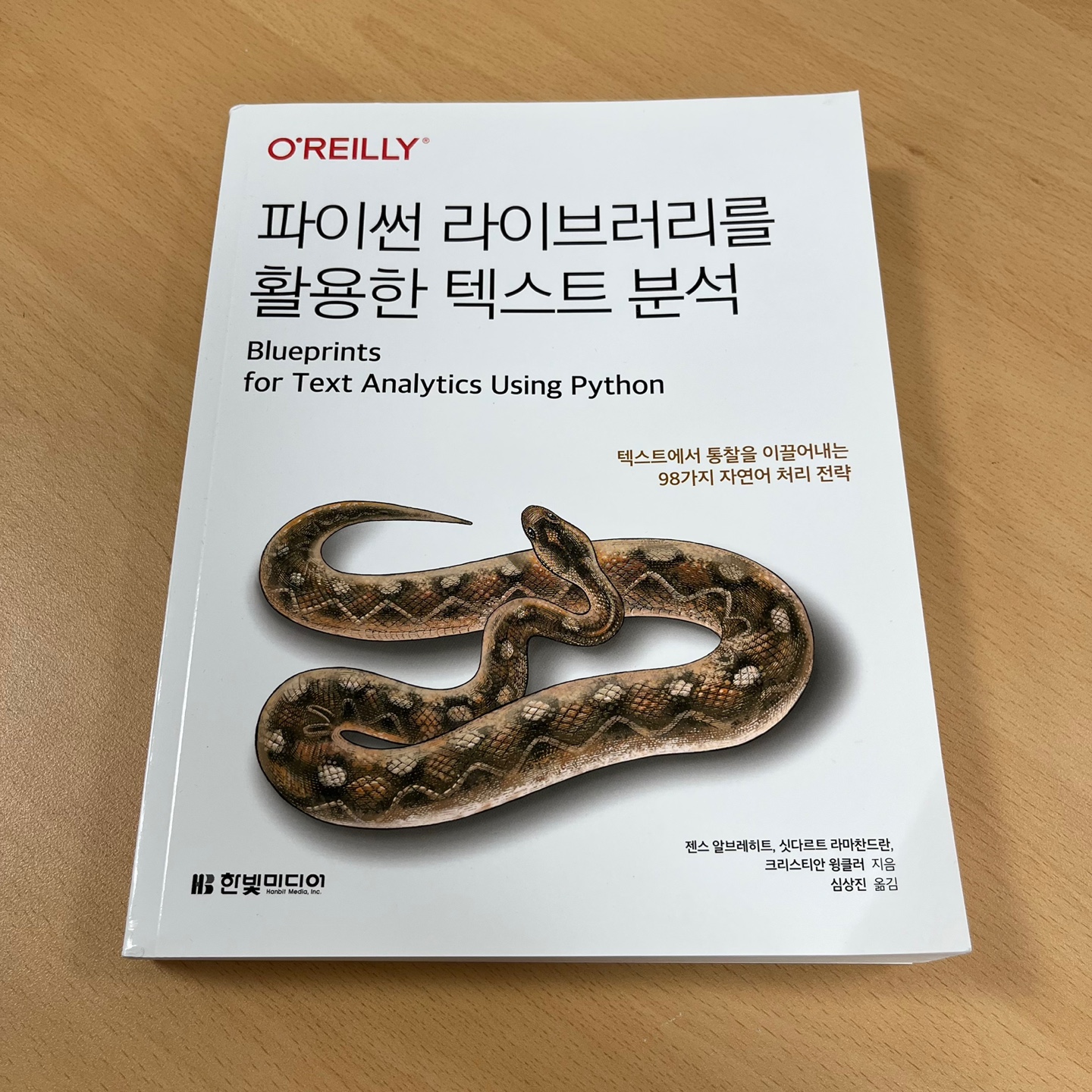 표지는 다음과 같고, 파이썬 라이브러리 기반 책이라 그런지 뱀이 그려져 있다.
