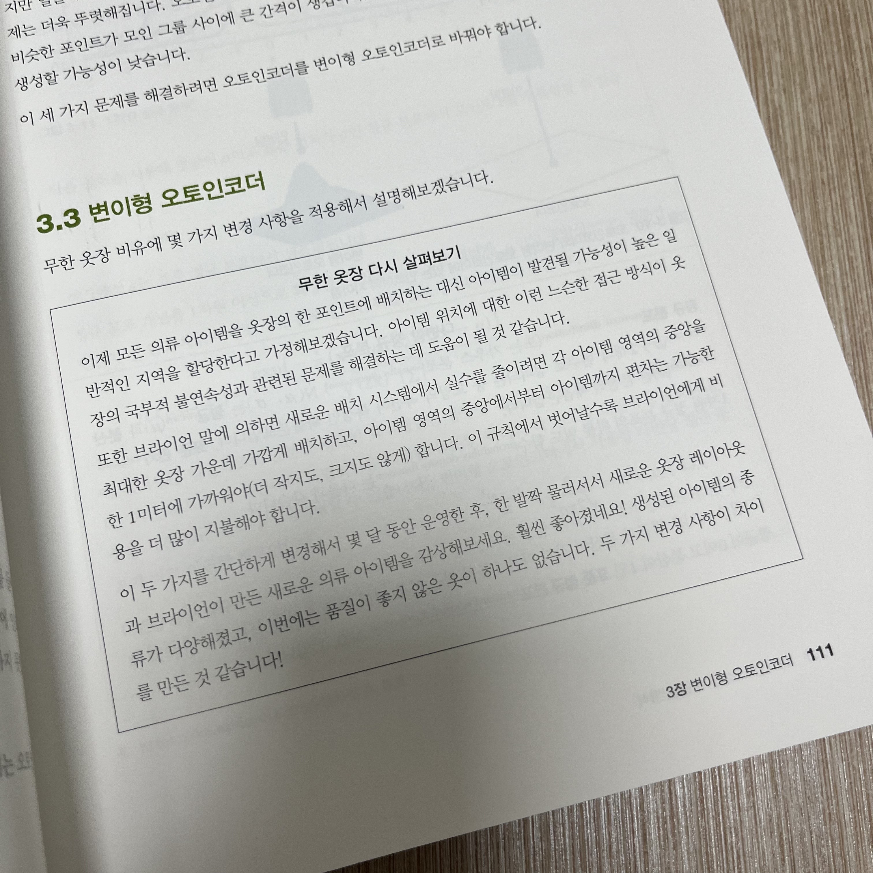 원래 이런 코딩 관련된 책이 쉽게 재미 없어지기 마련인데, 그림이 정말 많고 무슨 짧은 스토리를 이용해 설명을 해준다. 독창적이었다. 아마 일반인들에게는 많이 도움이 될 것 같았다. 또, 원래 인공 지능 책들이 번역이 정말 거슬리는데, 이 책은 괜찮았다. 거슬리는 것들이 사실 정말 모든 영어 단어를 강제로 한국어로 바꿔버리면서 이상해지는 것인데, 이 책에서는 "그레이디언트 패널티", "립시츠 제약" 처럼 어쩔 수 없는 것들은 잘 영어로 유지해놔서 그런 것 같다.