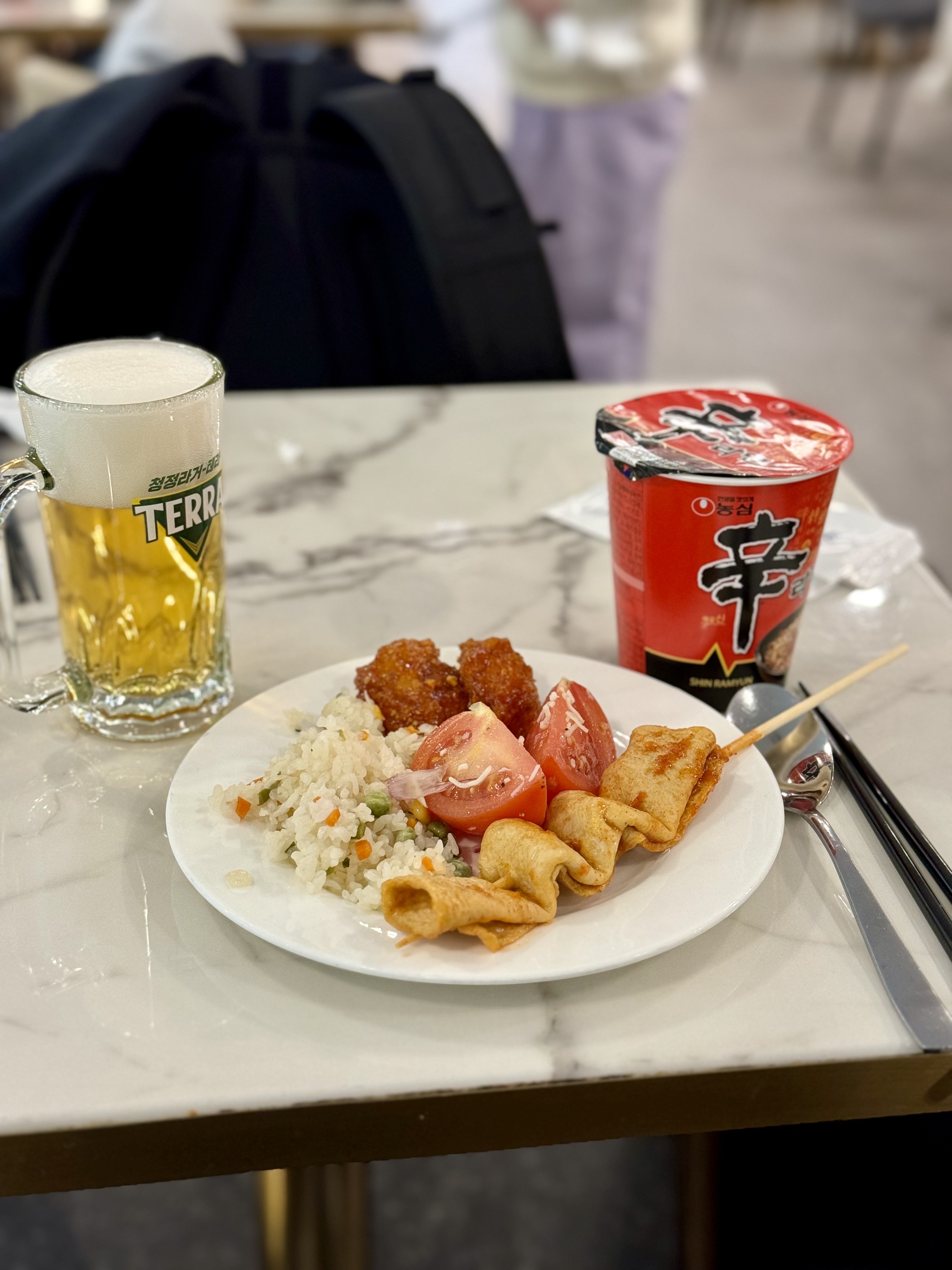 1터미널 스카이 허브 라운지고, 시간이 너무 많아서 안에서 저녁도 먹고 잠깐 면세점 구경도 실컷 하고 왔다. 음식이 뭐 대단하지는 않은 것 같았는데, 오랜 시간을 보낼 수 있게 해 주어서 좋았던 것 같다.