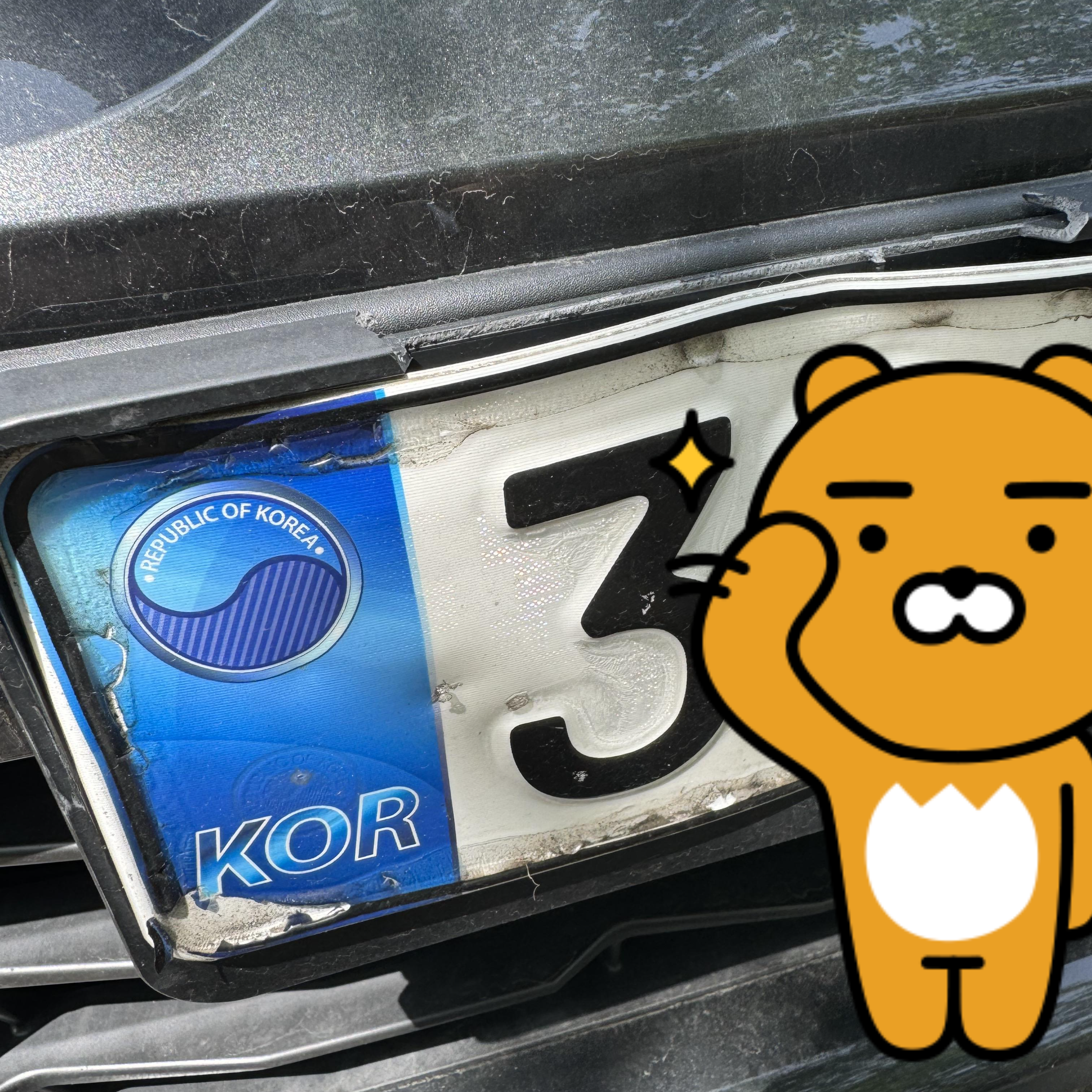 가니 멀리서부터 알아보셨는지 말도 안했는데 바로 번호판 교체 서류를 작성하라고 하셨다. 그리고 사진을 보면 알 수 있듯이, 내가 어딜 박아서 번호판 가드도 훼손된 상태여서, 설마 저거때문에 무상교체가 안되나 싶었는데, 이와 무관하게 번호판은 무상 교체를 해주셨다. 다만 번호판 가드를 구매해서 오천원, 그리고 교체를 해주셔서 오천원, 총 만원을 냈다.