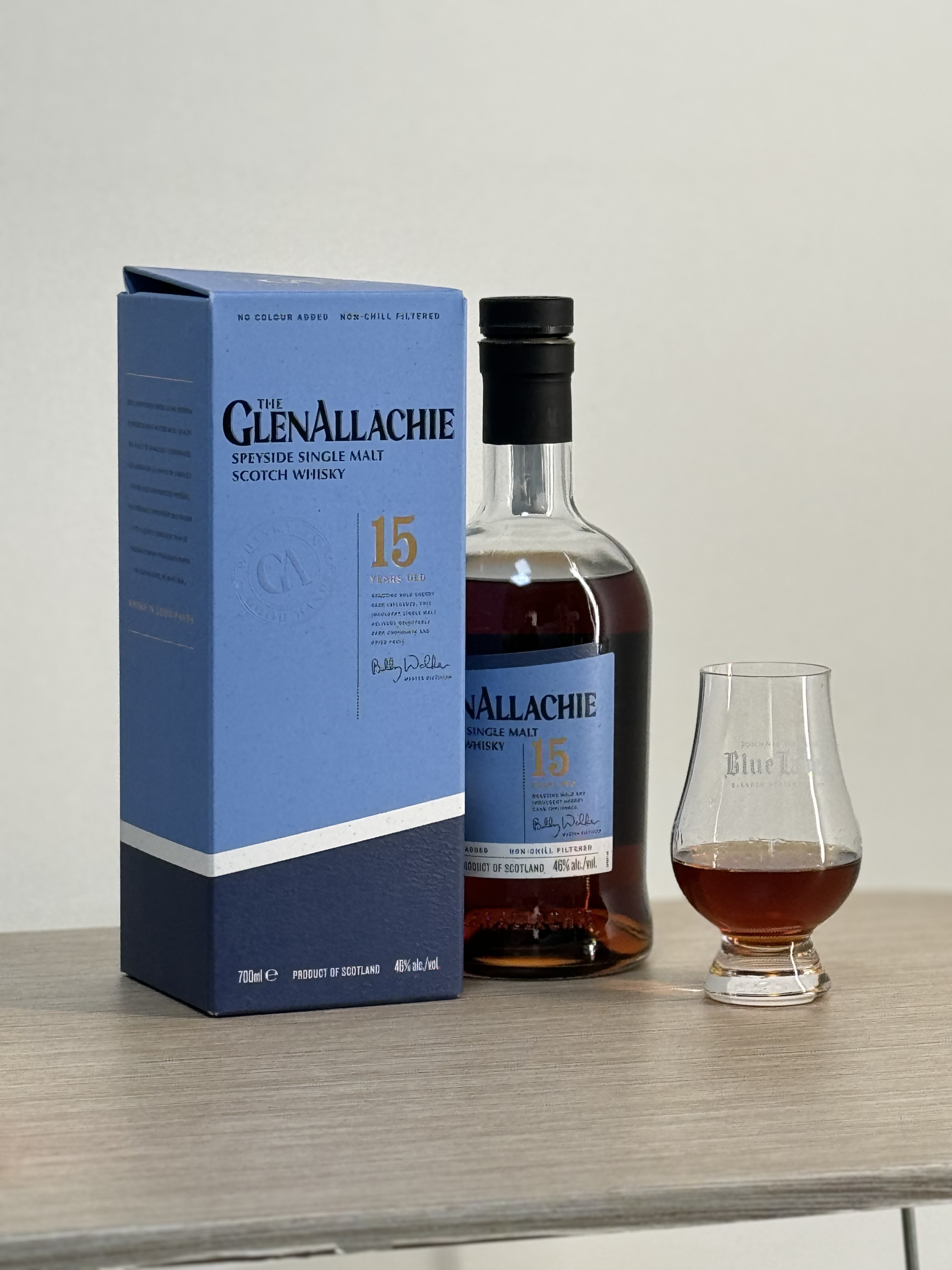글렌알라키 15년은 CS가 아니다보니 57도의 고도수는 아니지만, 46도로 그래도 위스키 중에 높은 편에 속한다. 많은 블렌디드 위스키들이 아마 40도일 거고 조니워커 블루라벨에서도 고스트앤레어나 토끼띠 처럼 한정판 애들 몇몇이 46%의 도수를 가지고 있다고 알고 있다.