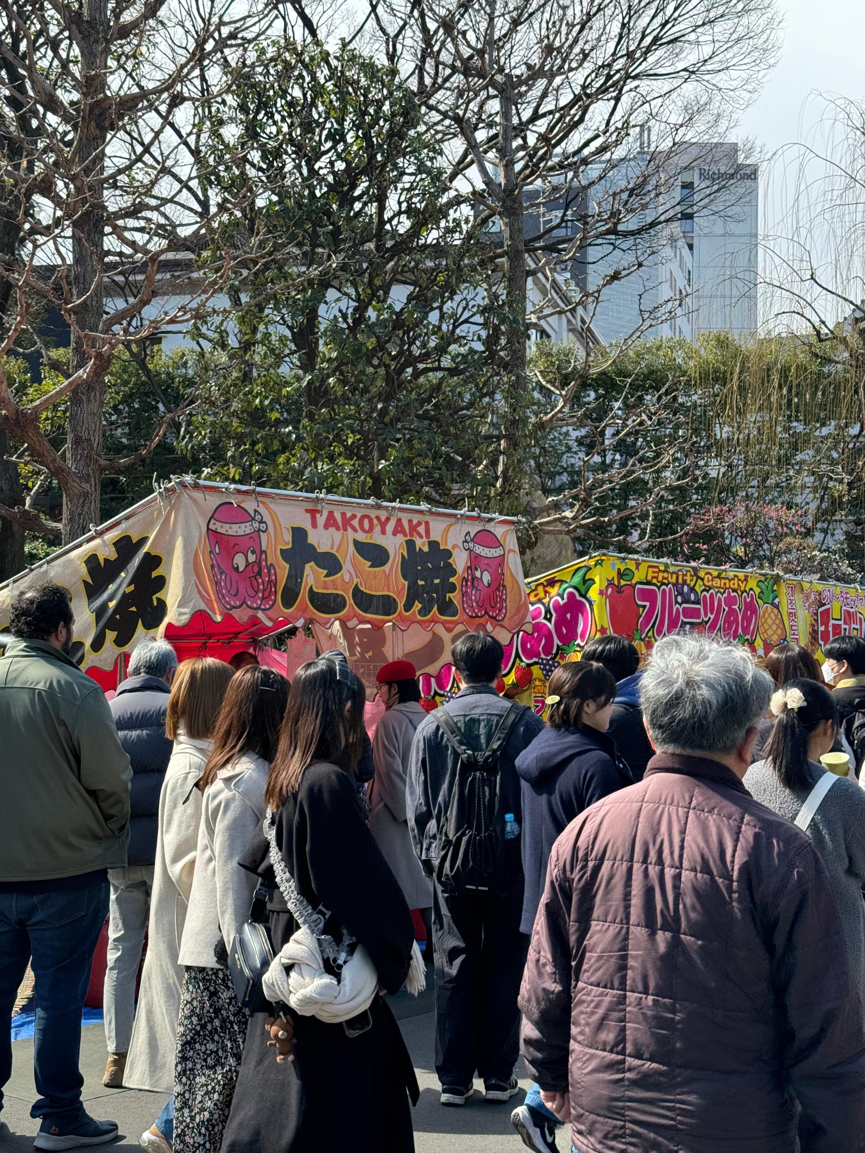 근처에는 센소지 라는 곳이 있었다. 사찰 같은 곳 같은데, 꽤나 컸다. 또 천황탄신일때문인지는 모르겠지만, 푸드트럭도 많고 사람도 진짜 정말 많았다. 패키지인지, 깃발을 단 가이드들이 여럿 인솔하는 그룹도 몇번 보였다. 여기서 일본 전통 문화를 미세하게 구경하고 뽑기도 했다.