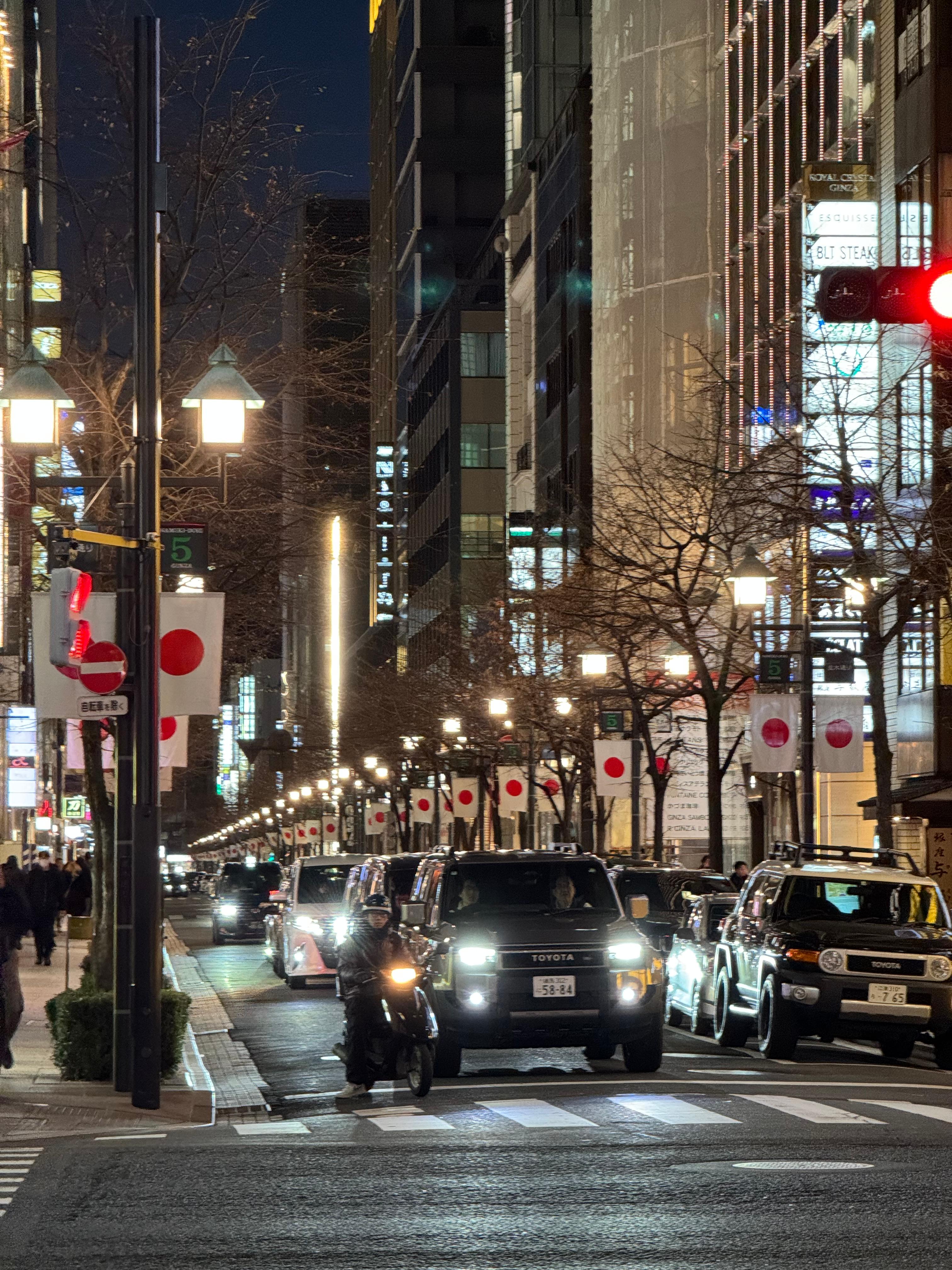 천황탄신일이라 그런지 일장기가 쭉 달려있었다. 내가 대학생 때 터키를 갔을 때도, 작년 크로아티아 여행을 위해 터키에서 경유를 했을 때 모두 무슨 공휴일이라고 터키 국기가 온 동네에 걸려있었는데, 비슷했다.