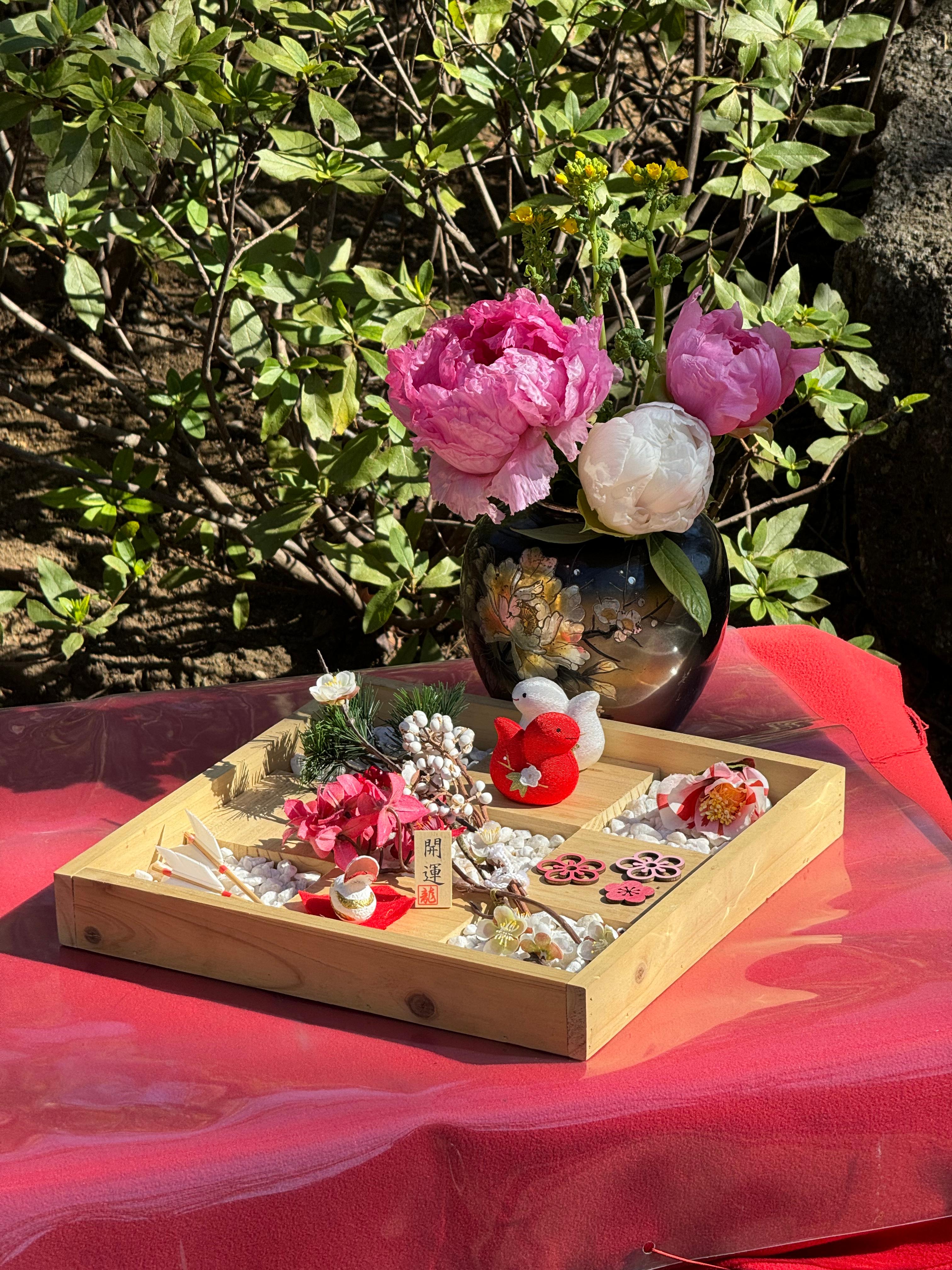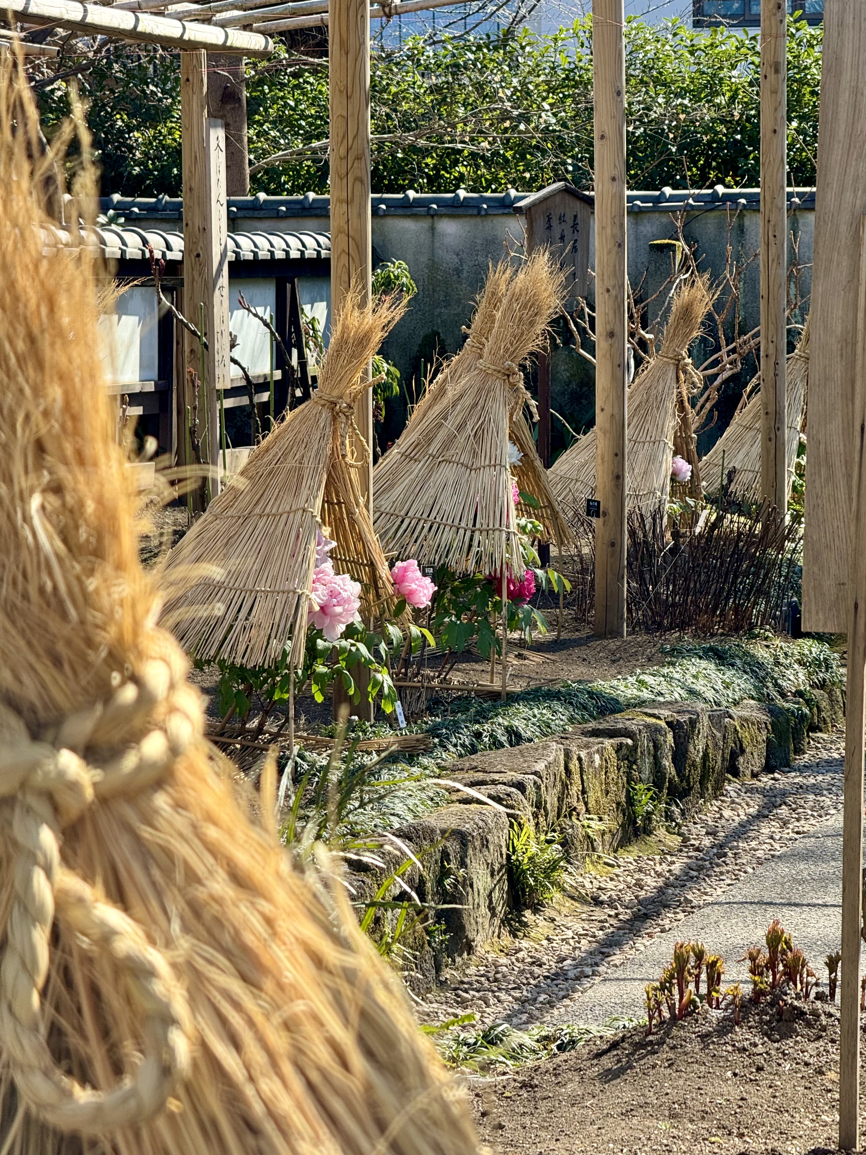 꽃들이 좀 있는 정원도 구경했다. 추워서 안 핀애들도 있었지만, 나름 핀 애들은 정말 풍성하게 피어있어서 예뻤다. 또 한 꽃 한 꽃씩 전시를 하듯 배치해놓았는데, 위에 비를 피하라고 해놓은 것 같은 볏짚도 귀여웠고 정성이 느껴졌다.