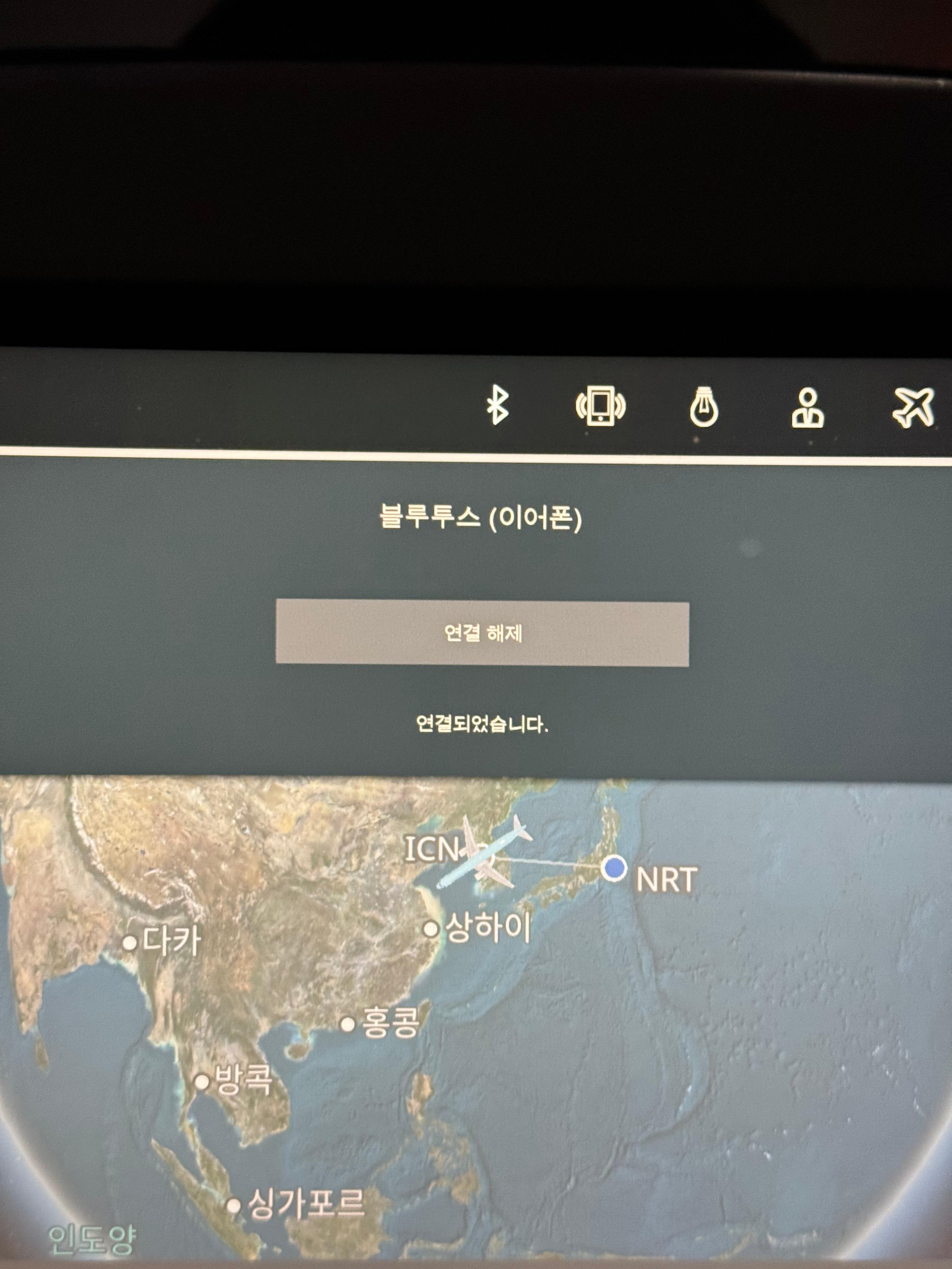 모니터도 완전 빠릿빠릿하고 필름을 갓 뗀 느낌이 났고 무슨 내 에어팟이랑 블루투스 연결이 된다. 진짜 비행기 많이 타봤는데 이런 경우는 첨 본다. 이번주에 미국을 갈 때 A380을 타는데, 오히려 A380이면 오래된 기체라서 이런 새삥 기술들은 안 들어있을 것 같다.