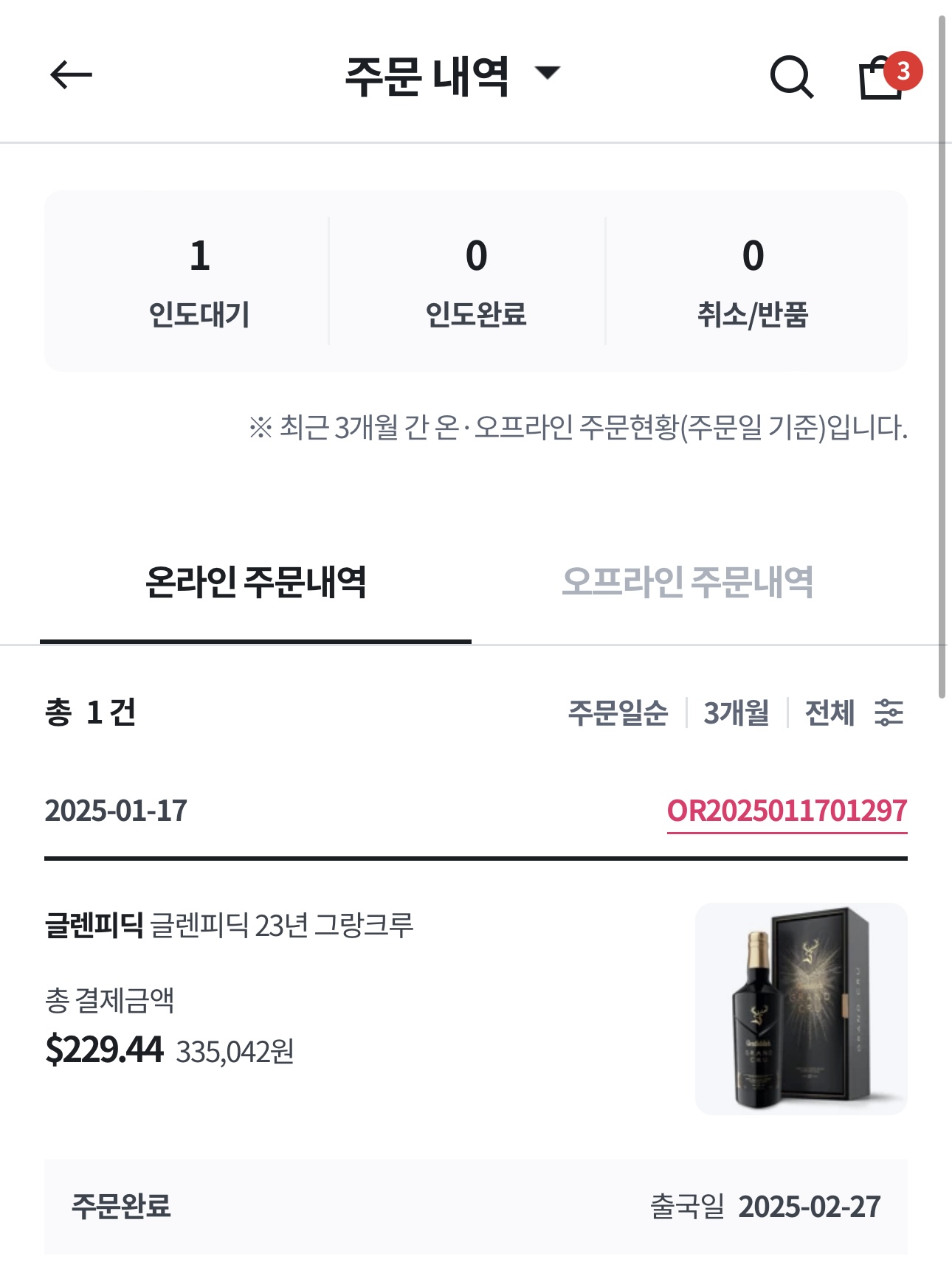 지난번 미국 학회 출장갔을 때 면세점에서 술을 샀었다.