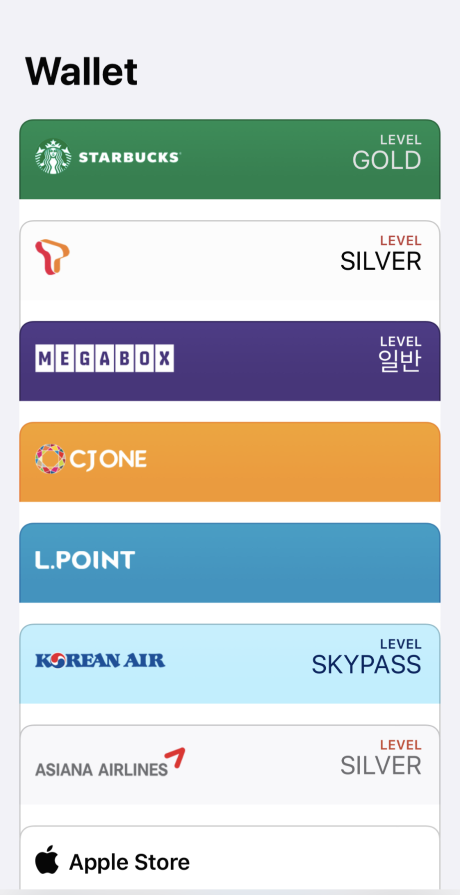아직 애플 페이나 애플 월렛을 우리나라에서 사용할 수 없는 기능들도 많고, 많이 보급되지도 않아서 멤버쉽의 경우는 공식적으로 지원하는 경우는 별로 없습니다. 항공권과 애플 스토어는 공식으로 한국에서도 공식적으로 지원이 되는데, 항공권의 경우에서도 서양의 대부분의 항공사는 지원하지만 우리나라에서는 큰 항공사, 대한항공과 아시아나 가 지원해주고 작은 항공사들은 지원하지 않는 경우들이 있습니다.