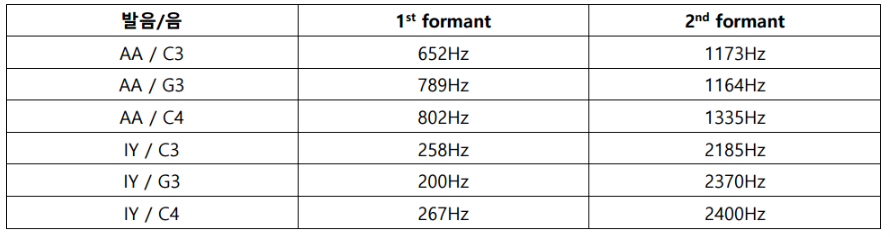 이렇게 제 1, 제 2 formant를 각각 정리하면 다음과 같습니다.