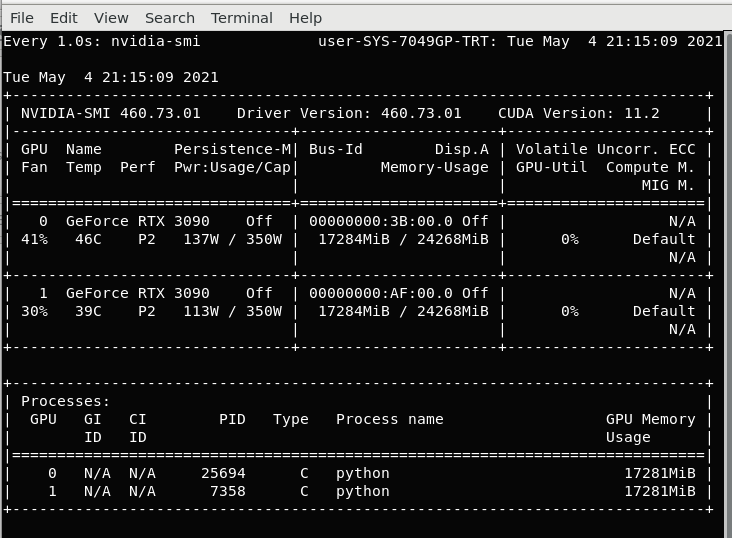 를 터미널에 치면 1초마다 업데이트 됩니다. nvidia-smi를 1초마다 눌러라 라는 명령이라서요.