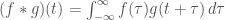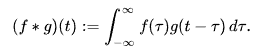 쉽게 정리해보자면, Convolution이란 두 개의 신호가 있을 때 한 신호를 한 칸씩 옮겨가며 두 신호를 곱하고 더하는 연산입니다. 엄밀하게는, Convolution의 식은 다음과 같고 두 개의 함수 f와 g를 가지고 표현한 어떠한 적분의 형태로 표현됩니다.